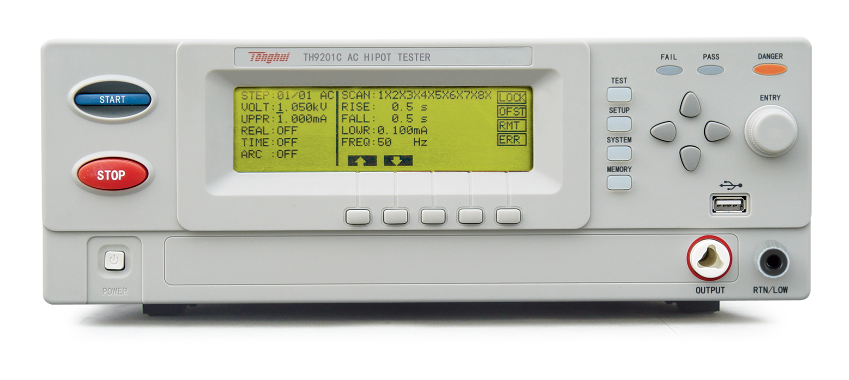■?TH9201C交流耐壓測試儀是一種為客戶精巧設計的電氣安規測試儀器。精簡和緊湊的結構、成熟的技術。全新的結構和操作界面使操作和使用都更簡便。包含更多實用的功能。TH9201C產品可廣泛應用于變壓器、設備、元器件特別是繞線元件的安全檢查。