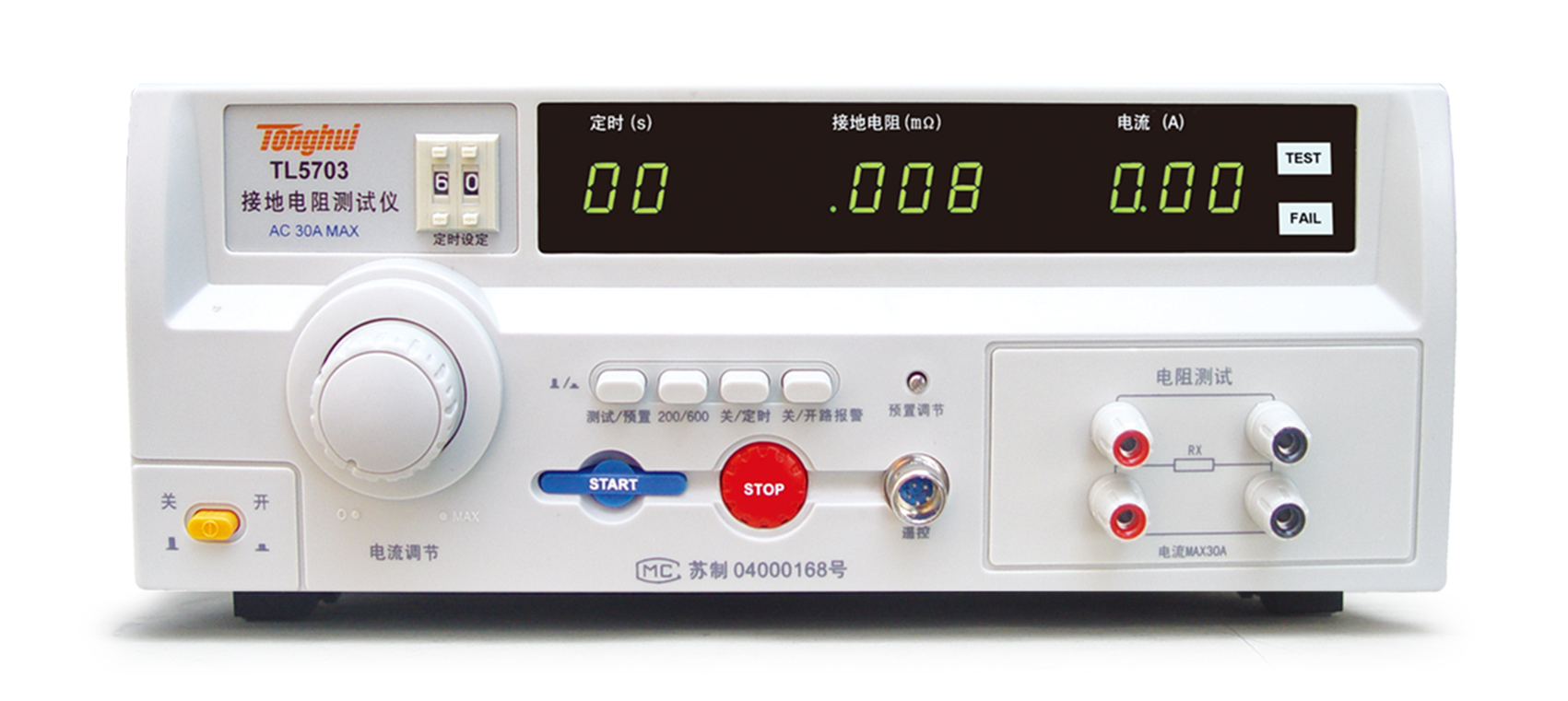 TL5703 接地電阻測試儀簡介■?TH5703型接地電阻測試儀是用來測量電氣設備內部的接地電阻,它所反映的是電氣設備的各處外露可導部分與電氣設備的總接地端子之間的(接觸)電阻。接地電阻測試儀為了消除接觸電阻對測試的影響,采用四段測量法,即在被測電氣的外露可導部分和總接地端子之間加上電流,然后再測量這兩端的電壓,算出其電阻值。本產品滿足GB4706.1-2005,GB9706.1-2007等國內外