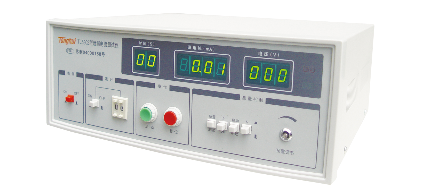 TL5802 無源泄漏電流測試儀簡介■?TL5802泄漏電流測試儀是用于測量電器的工作電源(或其它電源)通過絕緣阻抗或分布參數阻抗產生的與工作無關的泄露電流。其輸入阻抗模擬人體阻抗,產品使用與家用電器和電機,電子儀器等其他電器產品的安全測試要求,也是實驗室,計量監督部門不可缺少的檢測設備。本產品滿足GB4706.1-2005,IEC60335.1-2004等國內外安規標準測試,符合JJG843-2