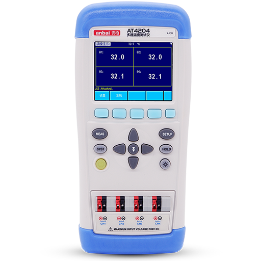 • AT4204手持式多路溫度測試儀采用高性能32位ARM微處理器控制,可同時對4路溫度數據進行采集,上超下超報警和通訊傳輸,兼容K/N/E/J/T/R/S/B型熱電偶,響應速度快,數據穩定,同時具備斷偶檢測功能。超低功耗設計和高密度SMD裝配工藝,真彩TFT液晶顯示屏,并具有鍵盤,觸摸屏 雙控制。采用鋰電池供電,USB通訊。中英文操作界面可快速切換。儀器標配的數據采集軟件為您進行數據分析提供強有力的支持!