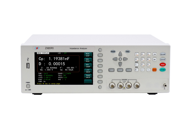 ZX8590系列高頻精密阻抗分析儀:使用自動平衡電橋技術及四端對開爾文測試端、測量頻率范圍涵蓋20Hz~25MHz,最小分辨率1mHz,基本測量精度可達0.05%。