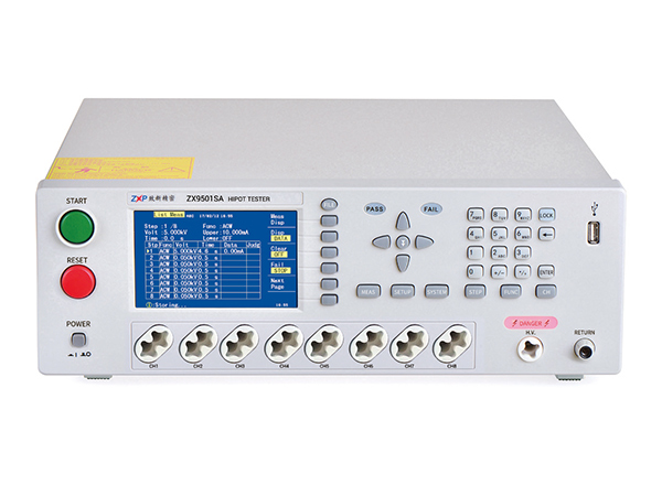 ●ZX9501SA-8:帶8路掃描功能交直流絕緣耐壓測試儀,帶測試線接觸檢查功能。