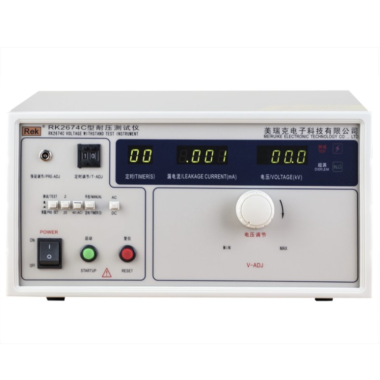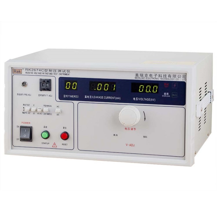 美瑞克RK2674系列耐壓測試儀是測量耐壓強度的儀器,可以直觀、準確、快速地測試各種被測對象的擊穿電壓、漏電流等電氣安全性能指標,并可以作為高壓源用來測試元器件和整機性能。