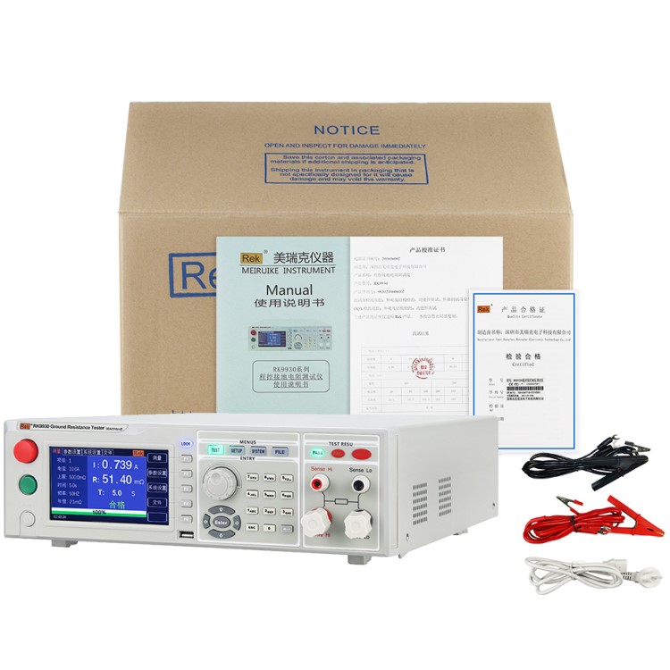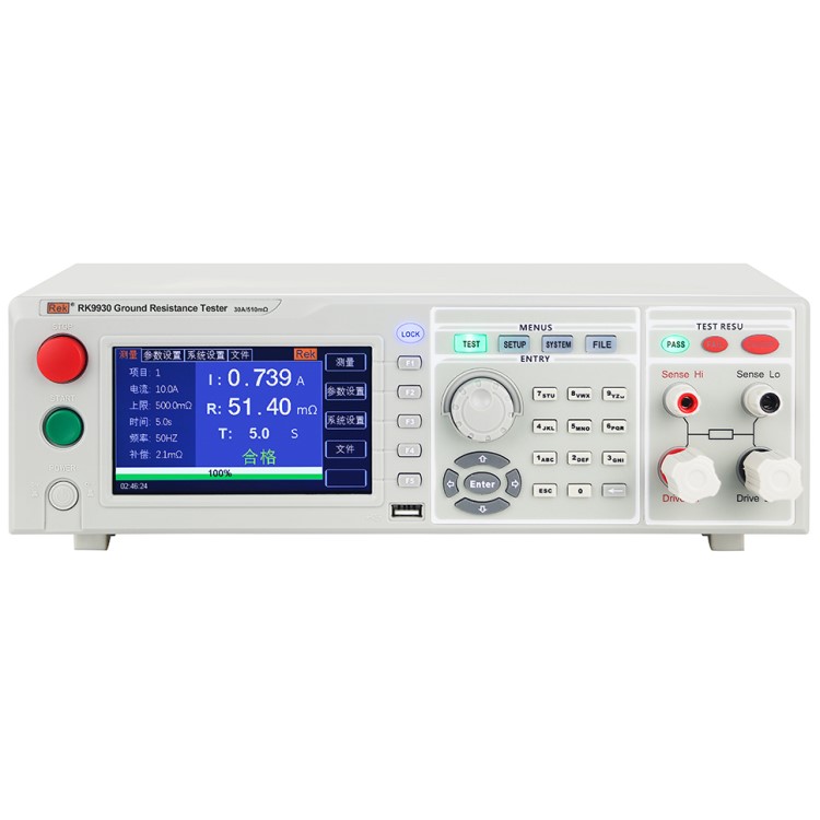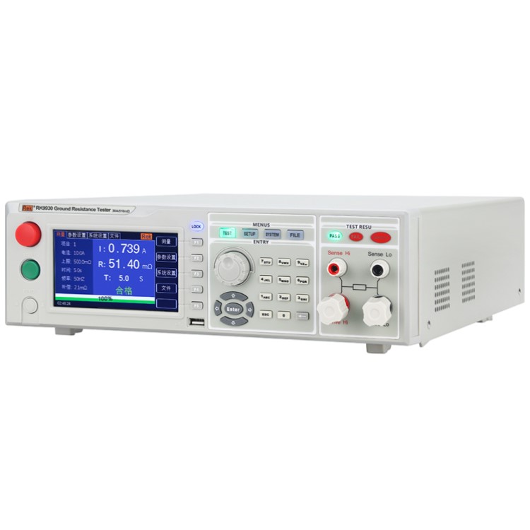 RK9930系列程控接地電阻測試儀均采用高速MCU和大規模數字電路設計的高性能的安規測試儀,輸出電流采用硬件反饋、高速MCU控制技術,使輸出電流穩定可靠。輸出電流采用DDS+功放驅動輸出,輸出波形純凈失真小。能實時顯示電流值和電阻值,并具有軟體校準功能,配備PLC接口、RS232C、RS485、USB device、USB Host接口,可方便與計算機或PLC組成綜合測試系統。能夠快速、準確地對家用電器、儀器儀表、照明電器、電動電熱器具、計算機、信息類整機進行安規綜合測量。本儀器符合IEC60335-1、GB4706.1、UL60335-1家用和類似用途電器的安全第一部分:通用要求UL60950、GB4943、IEC60950信息技術設備UL60065、GB8898IEC60065音頻、視頻及相似電子機械安全的要求IEC61010-1、GB4793.1測量、控制和實驗室用電氣設備的安全要求第1 部分:通用要求。