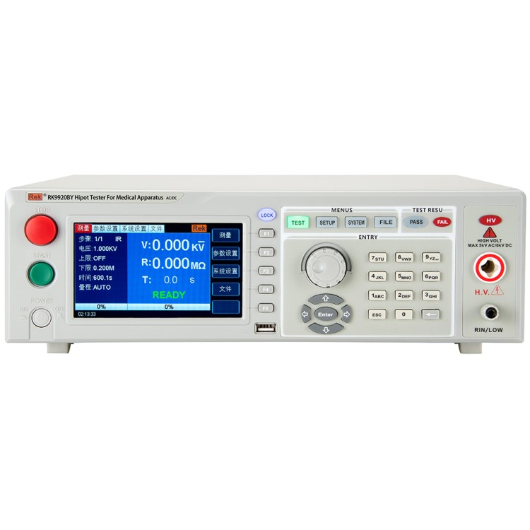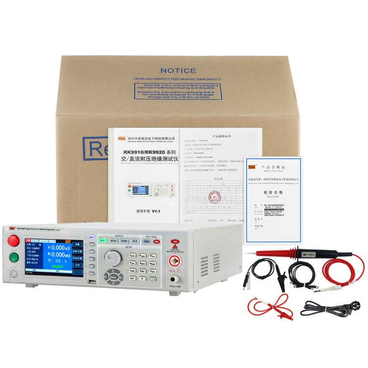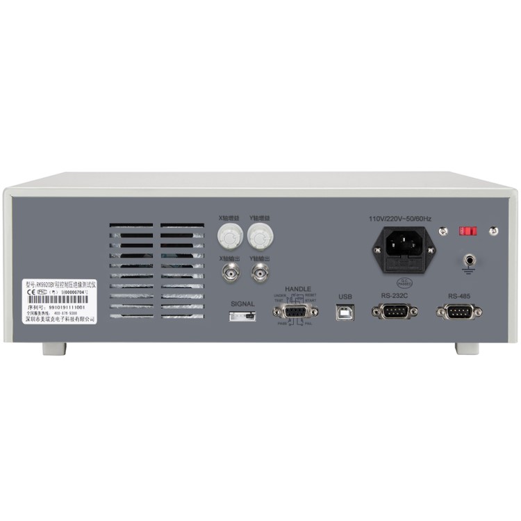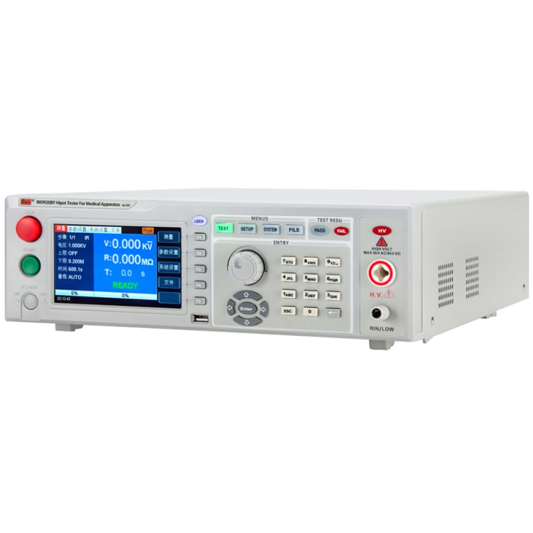 本系列程控耐壓測試儀均采用高速MCU和大規(guī)模數(shù)字電路設(shè)計的高性能的安規(guī)測試儀,其輸出電壓的大小、輸出電壓的上升、下降、輸出電壓的頻率完全由MCU控制,能實時顯示擊穿電流值和電壓值,并具有軟件校準功能,配備PLC接口、RS232C、RS485、USB device、USB Host接口,可方便與計算機或PLC組成綜合測試系統(tǒng)。 RK99系列程控醫(yī)用耐壓測試儀具有常規(guī)耐壓測試儀所有功能外,增加了電弧(閃絡(luò))偵測功能,通過外接示波器,可以直觀、準確、快速、可靠地檢測到被測電氣設(shè)備的“閃絡(luò)”現(xiàn)象被測電氣設(shè)備無“閃絡(luò)”現(xiàn)象時,示波器顯示一個穩(wěn)定的“李沙育圖形即一個閉合的圓環(huán)”,若被測電氣設(shè)備發(fā)生“閃絡(luò)”現(xiàn)象,則李沙育圖形的邊綠會出現(xiàn)較大的電氣設(shè)備發(fā)生“閃絡(luò)”現(xiàn)象以保證被測電氣設(shè)備的安全。本產(chǎn)品同時也適合需要檢測“閃絡(luò)”缺陷各種電氣設(shè)備等,是醫(yī)用電氣設(shè)備制造商、維修部門、使用單位以及產(chǎn)品質(zhì)量檢驗部門、技術(shù)監(jiān)督部門不可少的耐壓測試儀。