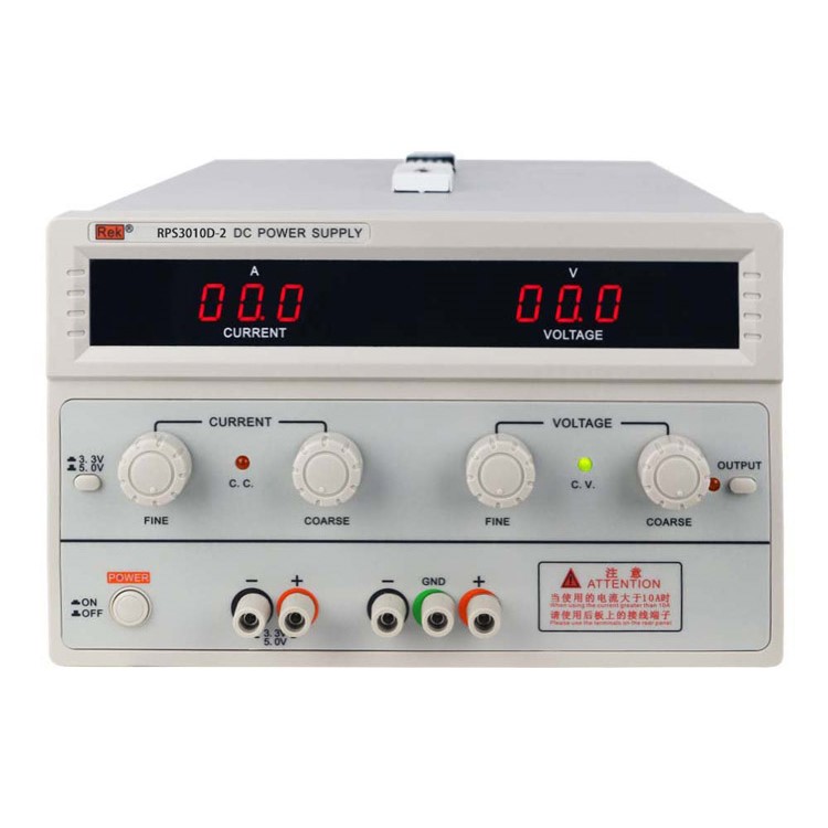 RPS系列直流穩(wěn)壓電源是專門為實驗室、學校和生產(chǎn)線的使用而設計,其輸出電壓和輸出負載電流都可在0和標稱值之間連續(xù)可調(diào)。且具有限流保護功能及自帶一個3.3V/5.0V/1A固定輸出。電源的穩(wěn)定度和紋波系數(shù)